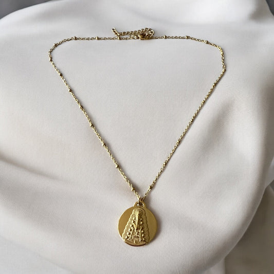 Colgante Redondo Virgen del Rocío Acero y Piedrecitas de colores