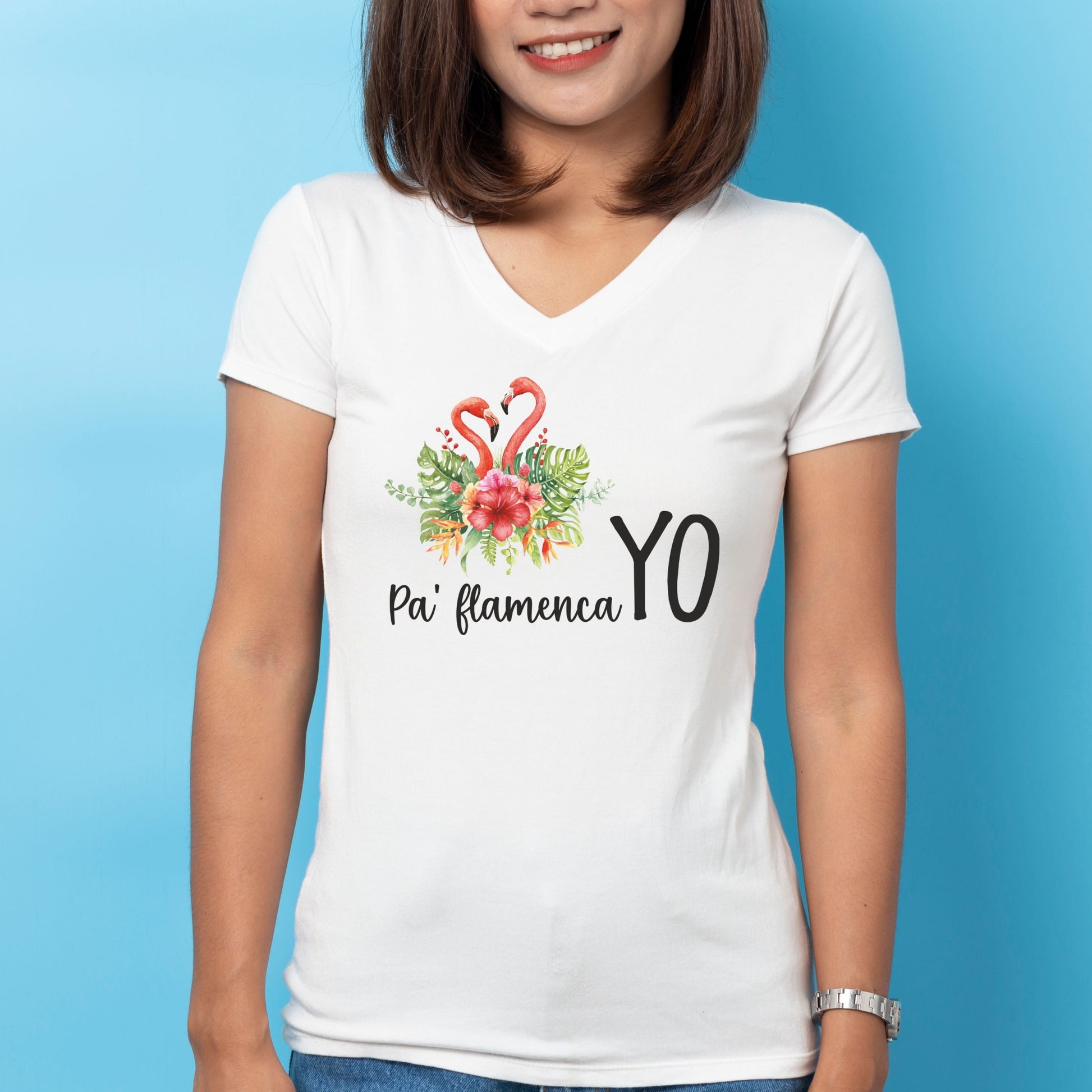 Presume de tu flamencura con esta camiseta de cuello en V, ideal para los meses de verano!