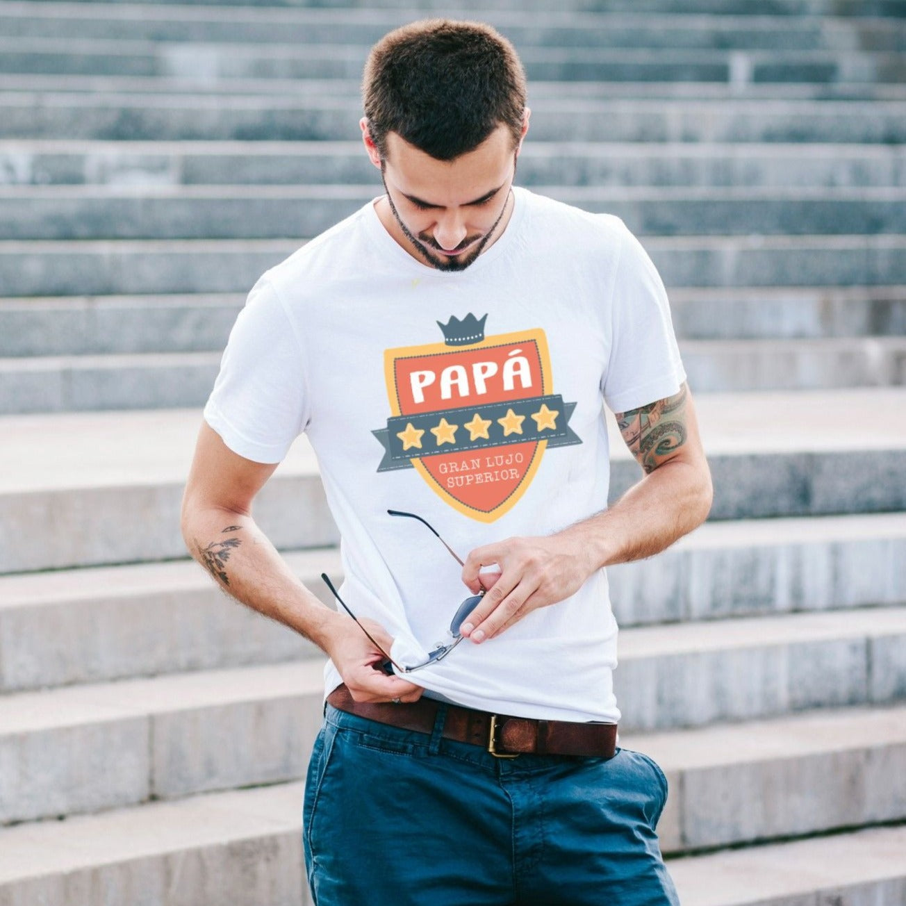 Mide el ancho de la camiseta de lado a lado a la altura del pecho, y el largo, desde el cuello hasta la parte inferior.