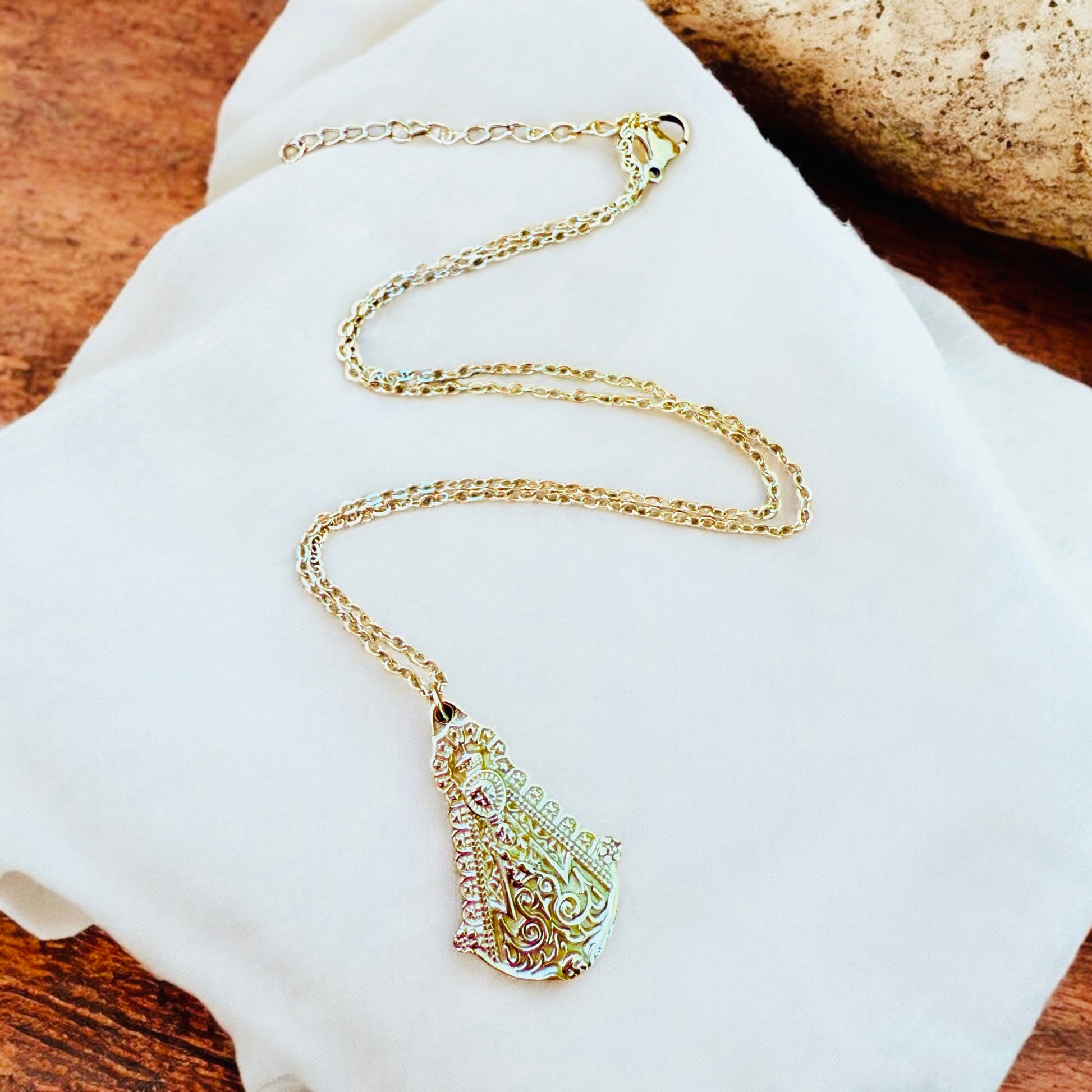 Nos encanta este modelo de colgante Virgen del Rocío, con un estilo clásico que nunca pasa de moda.