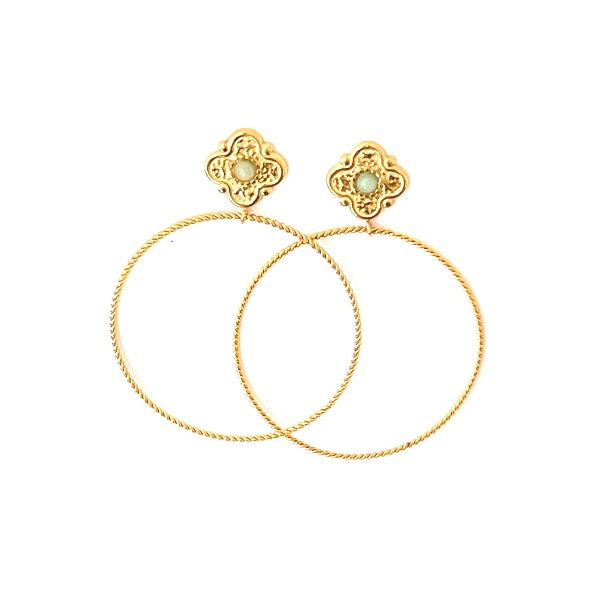 Pendiente en acero con baño en oro. Detalle en color verde agua.