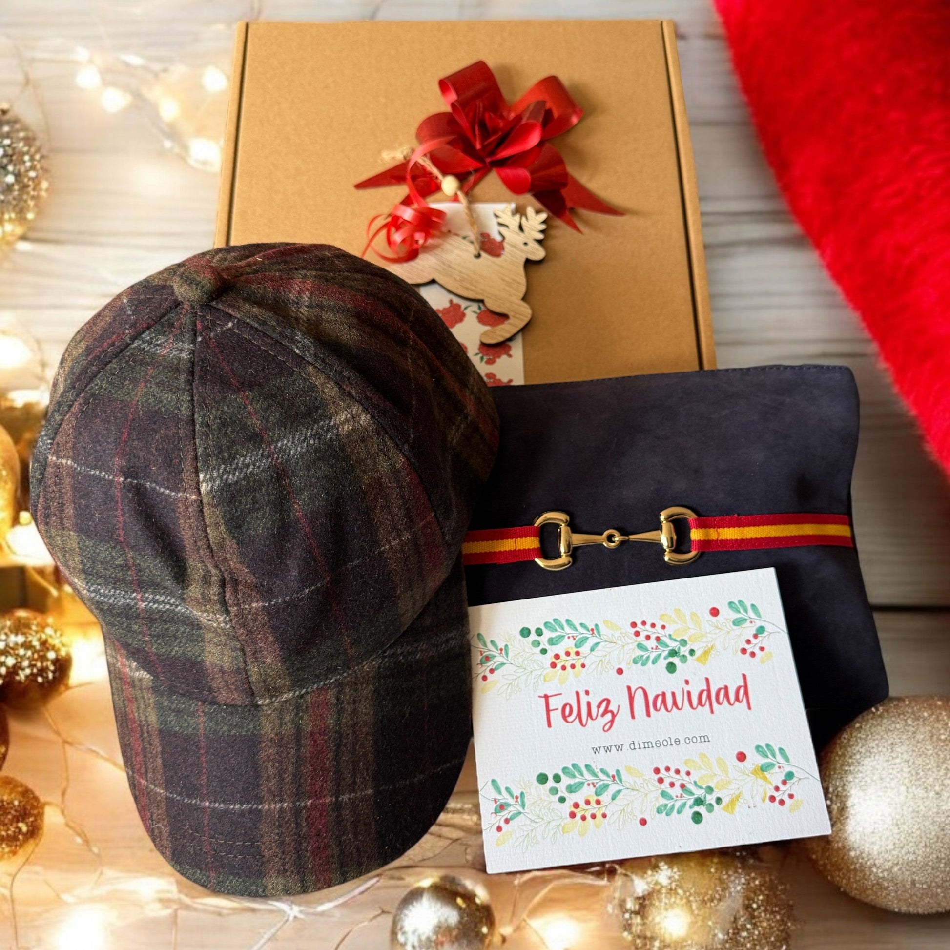 PACK GORRA CUADROS + BOLSO ECUESTRE AZUL