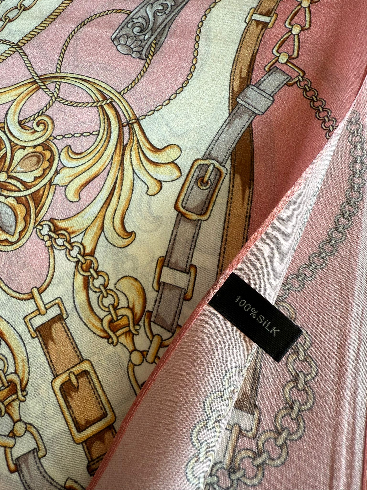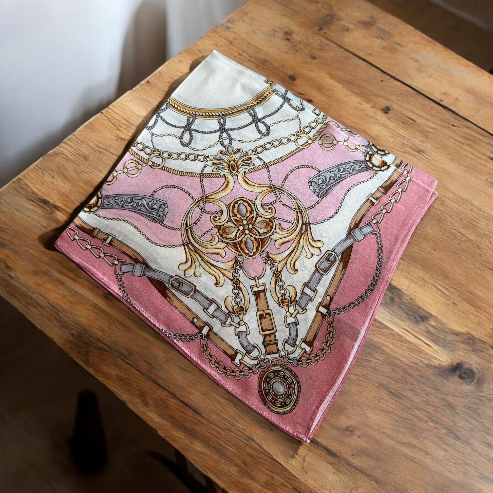 Tonos rosas y diseño ecuestre estilo Hermes.
